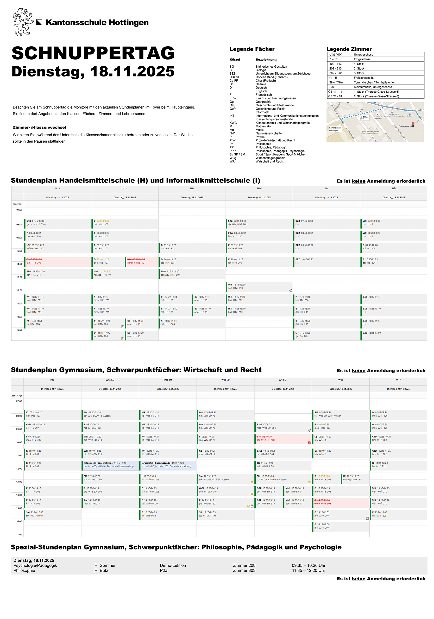 Am 18. November findet der Schnuppertag für zukünftige Schülerinnen und Schüler statt: Stundenplan.